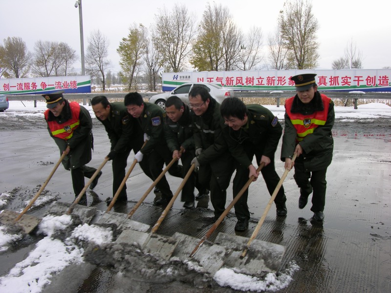 11月1日,一場(chǎng)揚(yáng)揚(yáng)灑灑的大雪襲卷了整個(gè)華北地區(qū),前幾天還是綠意盎然的收費(fèi)廣場(chǎng),瞬間變成了銀裝素裹的天地,2009年的第一場(chǎng)雪在帶給人們驚喜之余,也給道路暢通和出行安全帶來(lái)較大不便。為了保證站口安全暢通,宣化東、下花園收費(fèi)站采取有效措施,及時(shí)啟動(dòng)了除雪保暢應(yīng)急預(yù)案。
